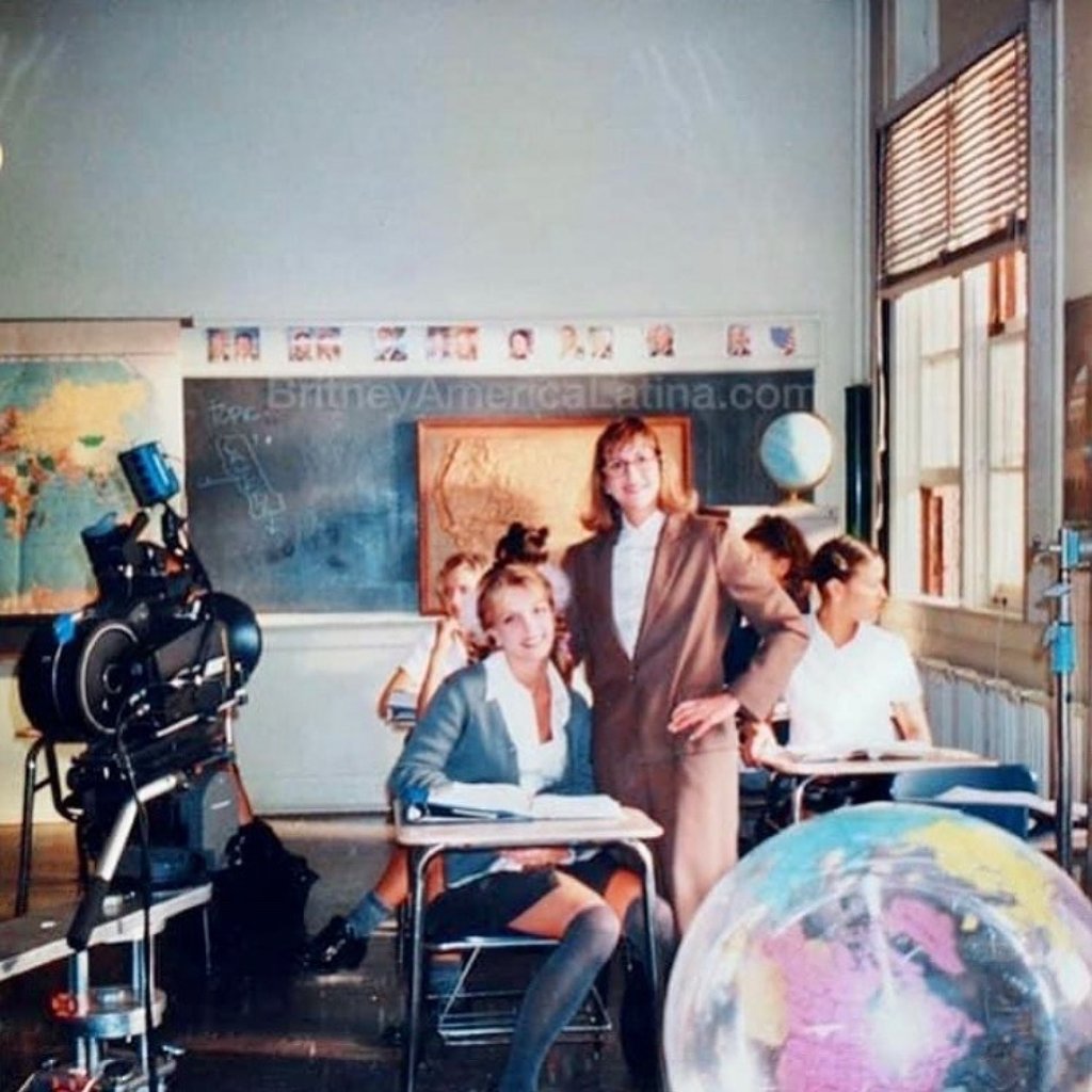 Бритни Спиърс на снимачната площадка на музикалния видеоклип към „Baby One More Time“. Снимка: Instagram/ @feliciaculotta1Бритни Спиърс на снимачната площадка на музикалния видеоклип към „Baby One More Time“. Снимка: Instagram/ @feliciaculotta1