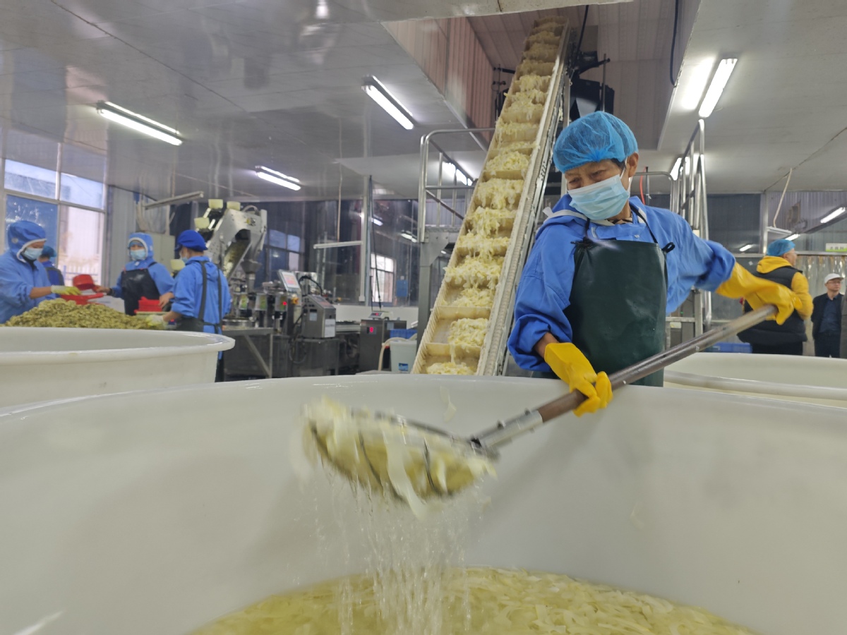 Работниците обработват бамбукови издънки в Hunan Lyudi High-tech Agriculture and Forestry Development Co. [Photo by Hou Liqiang/chinadaily.com.cn]