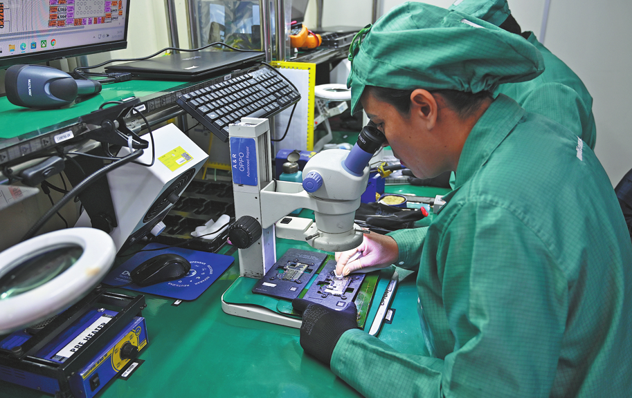 Служител работи в завод за производство на смартфони Oppo в Манаус, Бразилия. ДЖОУ ЙОНСУЙ/СИНХУА