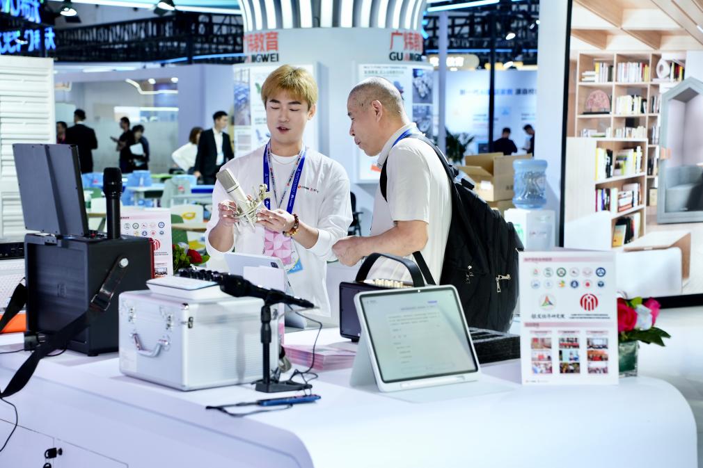Посетителите изпробват базираните на AI продукти на Lihua. [Photo provided to chinadaily.com.cn]