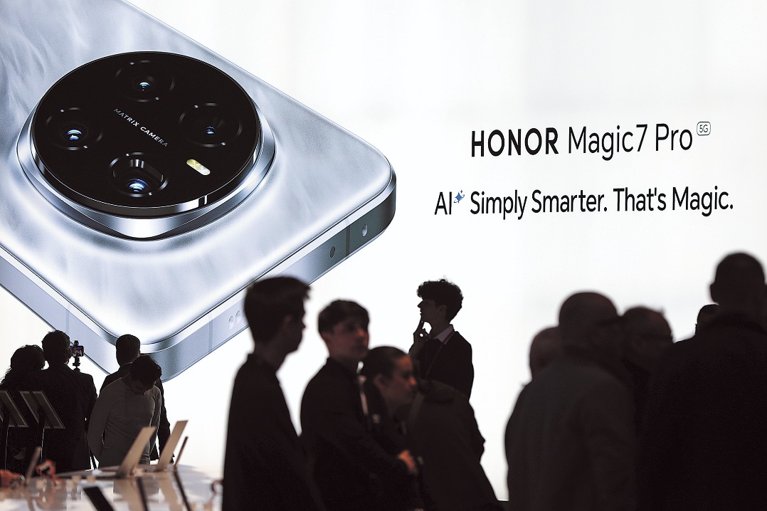 Посетителите проверяват чест „щандът на Mobile World Congress 2025 в Барселона, Испания, на 3 март. Джао Дингше/Синхуа