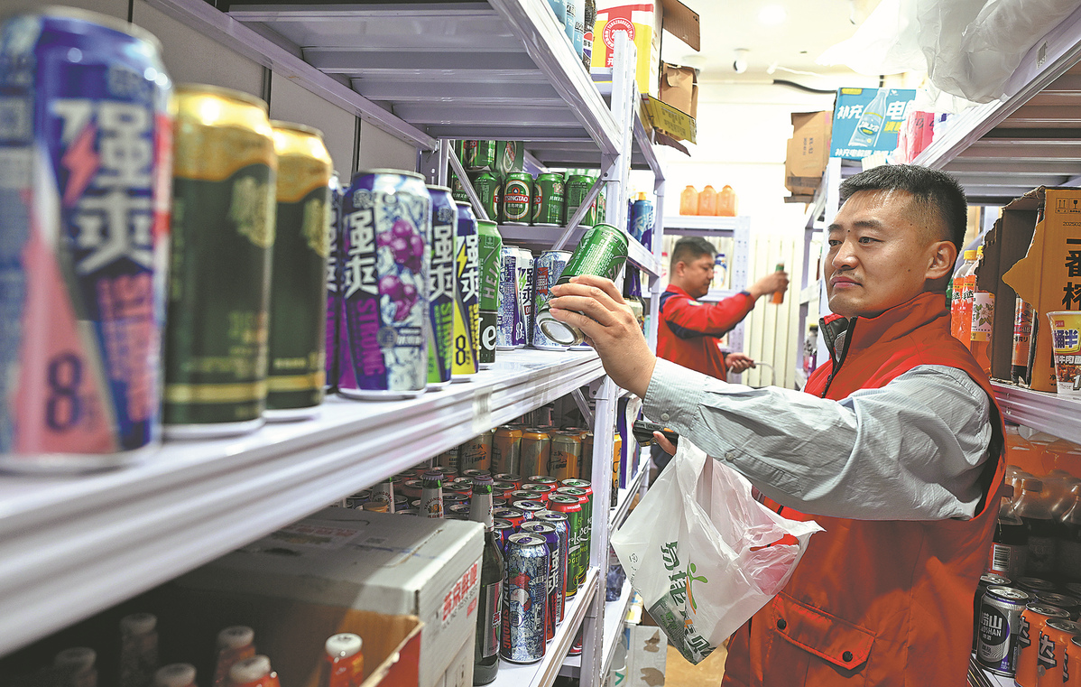 Служителите избират стоки за онлайн купувачи в магазин за удобства на Синопек в Пекин на 1 май. China Daily Daily