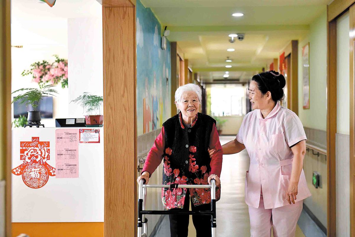 Член на персонала се грижи за възрастни хора в старчески дом в Ризхао, провинция Шандонг в Източен Китай, на 25 май. Гуо Сюли/Синхуа