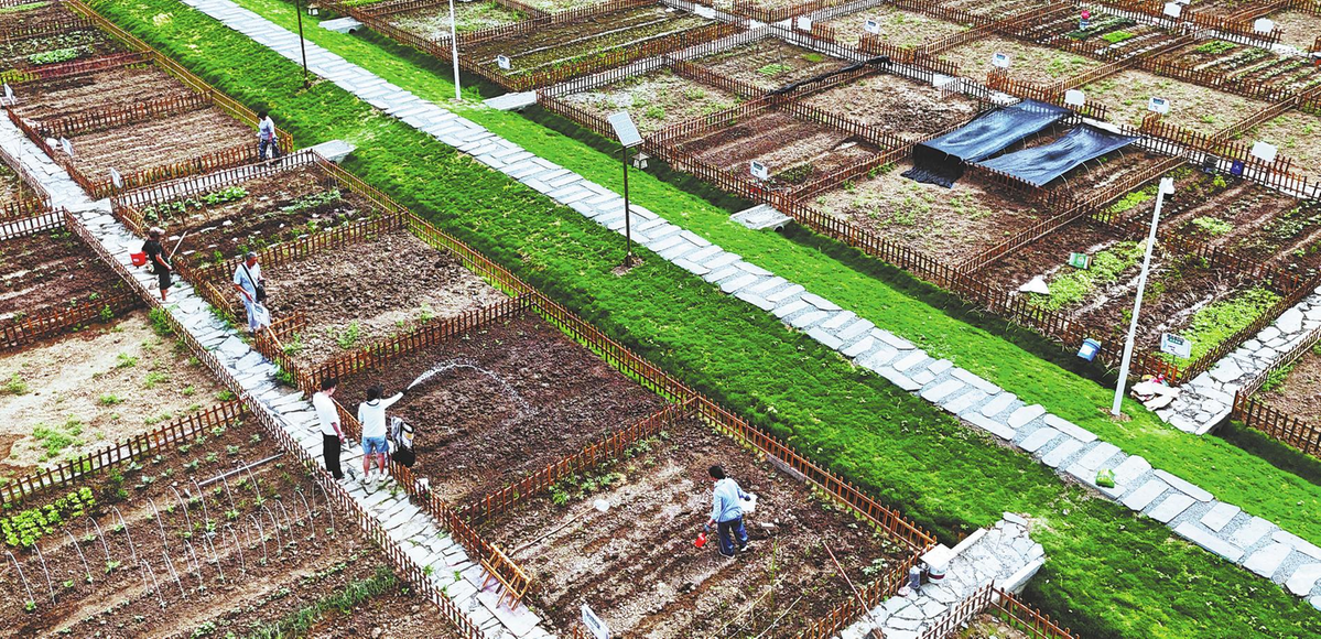 Хората участват в дейности в споделена ферма в Lianyungang, провинция Jiangsu, на 15 юни 2025 г. Проектът за градско земеделие позволява на жителите на града да отглеждат свои собствени зеленчуци върху наета земеделска земя, интегрирайки градинарството с учебни обиколки и развлекателни дейности, за да обогатят земеделския си опит. GENG YUHE/ЗА КИТАЙ ДЕЙЛИ