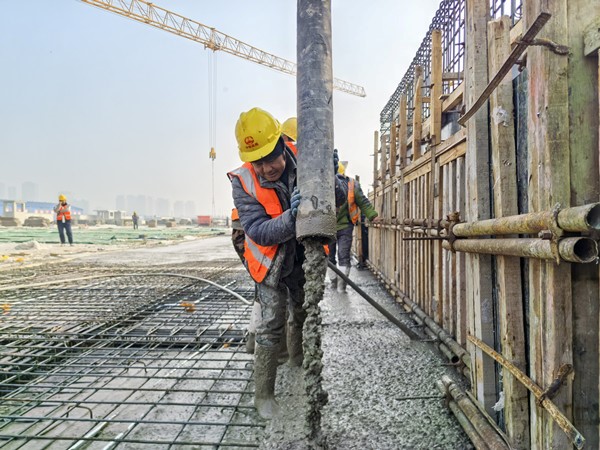 Служител от Инженерна група на Китайската железница № 4 работи по покриването на основните структури на Fenghe Ecological Sports Park, най-големият обществен екологичен парк в провинция Шандонг. [Photo provided to chinadaily.com.cn]