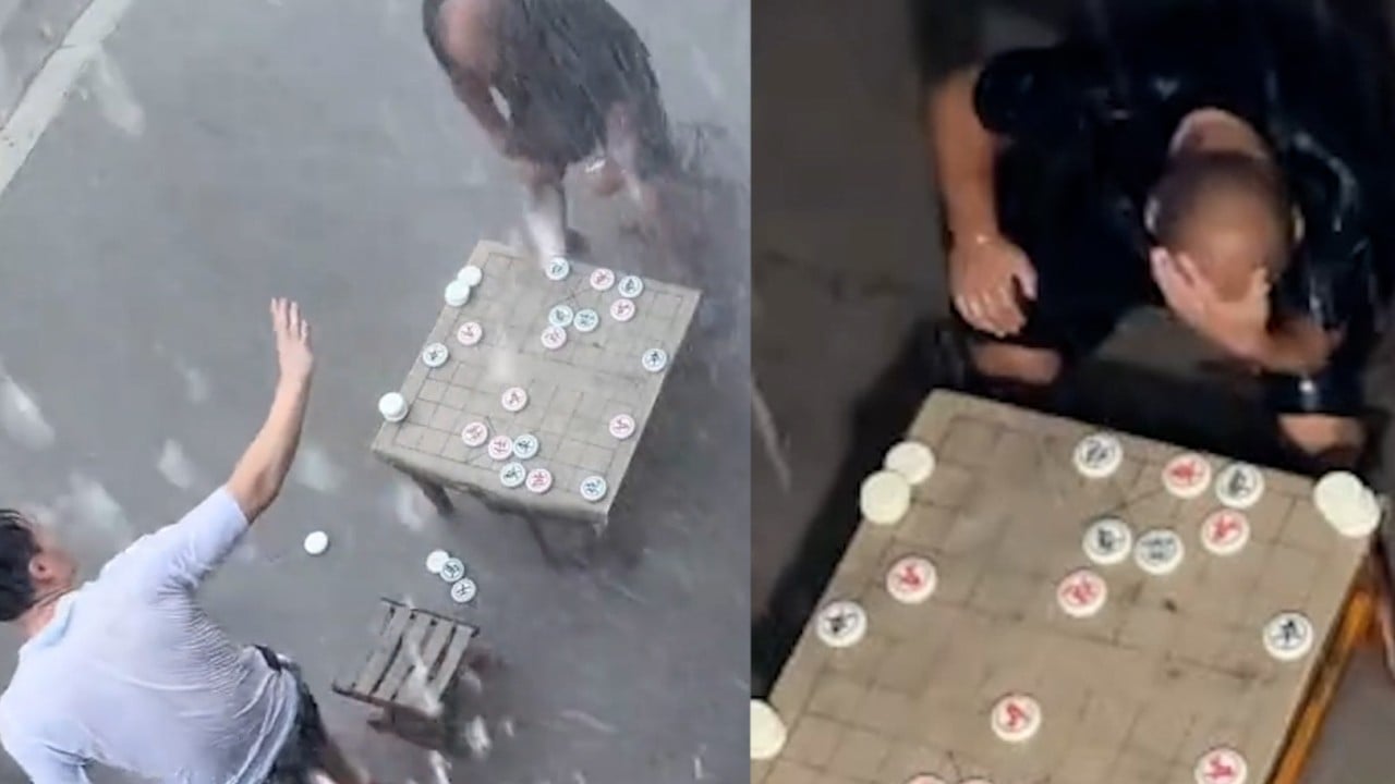 Мъж загуби мач по китайски шах, след което продължи да преглежда играта в продължение на около четири часа на фона на проливен дъжд в провинция Хъбей в Северен Китай.