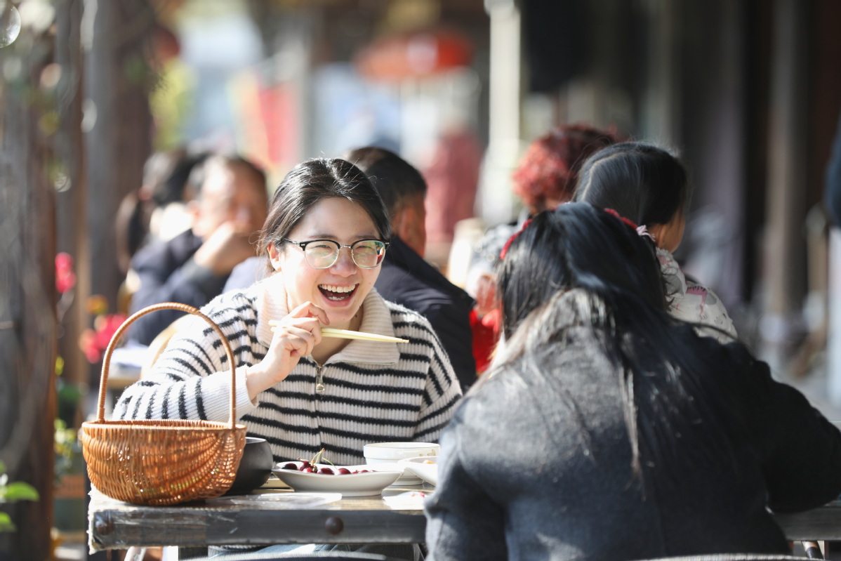 Хората се наслаждават на хранене в ресторант в исторически блок в квартал Нанху в град Джиаксинг, Източен Китай, провинция Жеджианг. [Photo/Xinhua]