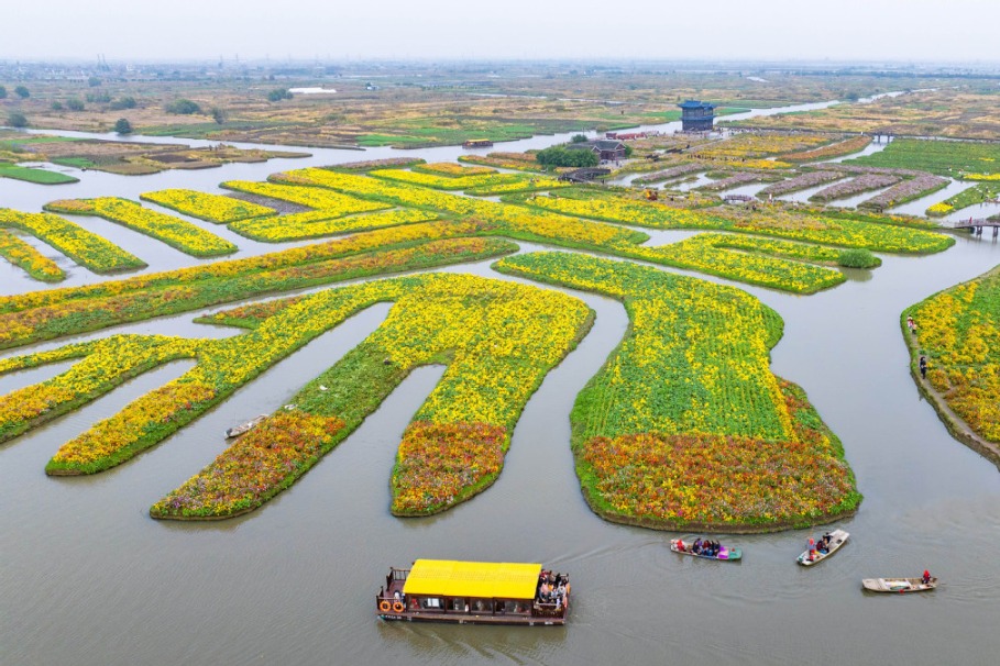 Въздушна снимка с дрон показва туристи, които вземат лодки на живописно място в Синхуа, провинция Дзянсу в Източен Китай, 10 ноември 2025 г. [Photo/Xinhua]