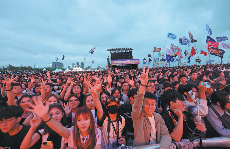 Огромна тълпа от музикални фенове препълва мястото на музикален фестивал в Рижао, провинция Шандонг в Източен Китай, на 6 октомври. ПРЕДОСТАВЯНО НА КИТАЙ ЕЖЕДНЕВНО