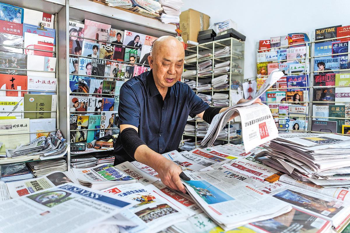 Jiang Jun организира различни вестници на старото място на павилиона за вестници на Wusong Road в квартал Hongkou в Шанхай миналата година. GAO ERQIANG/CHINA DAILY