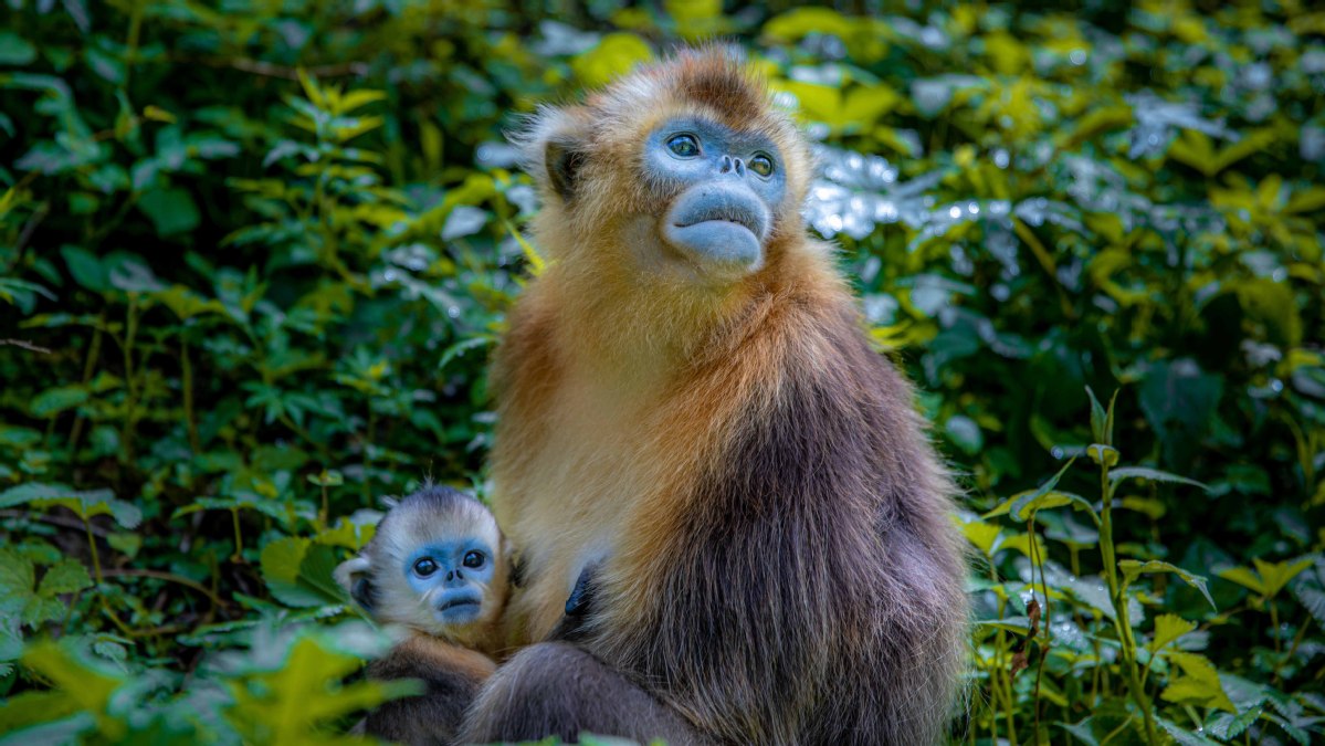 Маймуни в базата за изследване на маймуните със златни чипсети Dalongtan, разположена в националния природен резерват Shennongjia, провинция Хубей в Централен Китай. [Photo provided to chinadaily.com.cn]