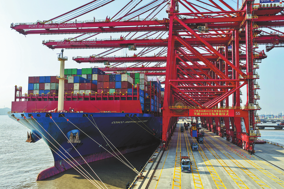 Изглед към контейнерната секция на пристанището Ningbo Zhoushan. [Photo provided to China Daily]
