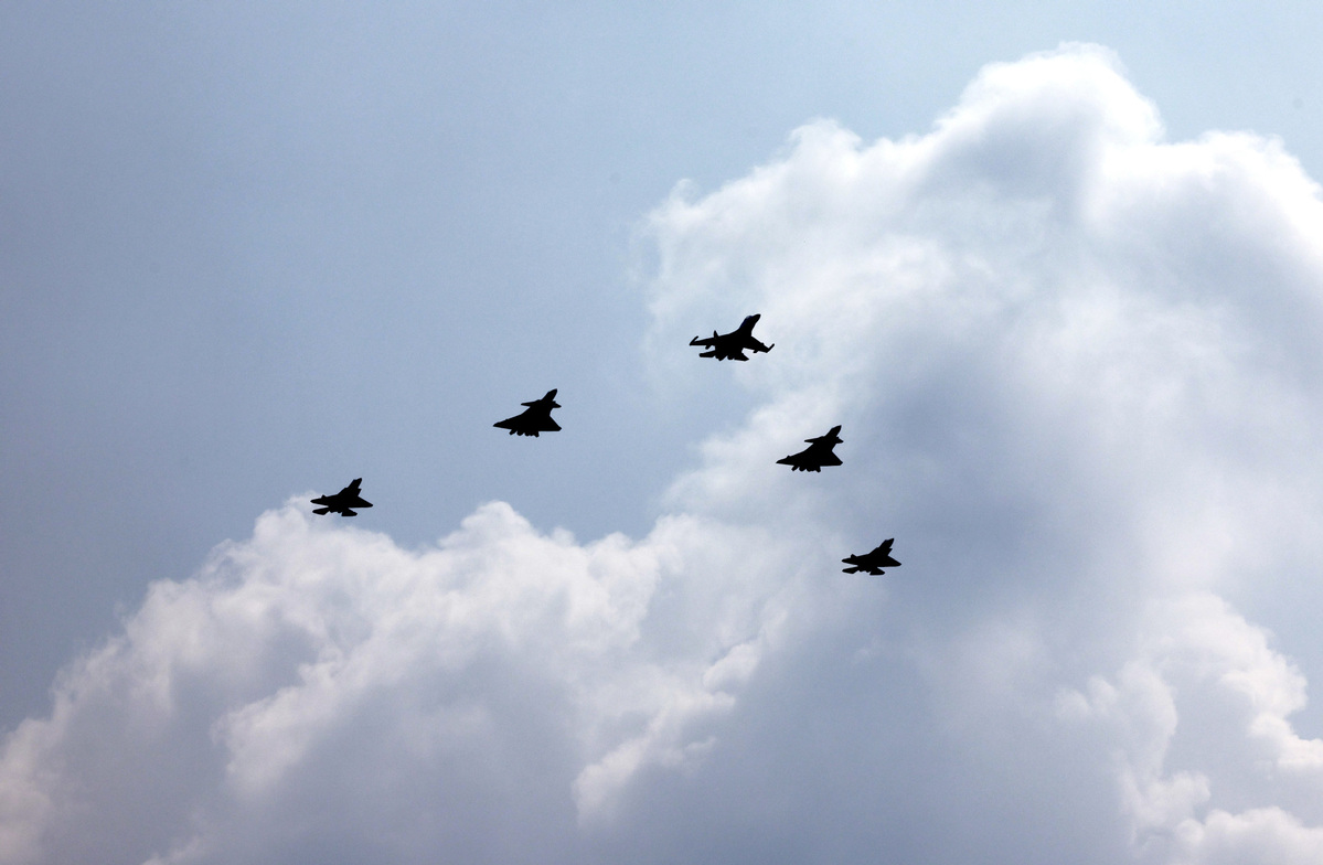 The echelon of aircraft carrier-based fighter jets attends a parade during a grand gathering to commemorate the 80th anniversary of the victory in the Chinese People’s War of Resistance against Japanese Aggression and the World Anti-Fascist War in Beijing, Sept 3, 2025. [Photo/Xinhua]