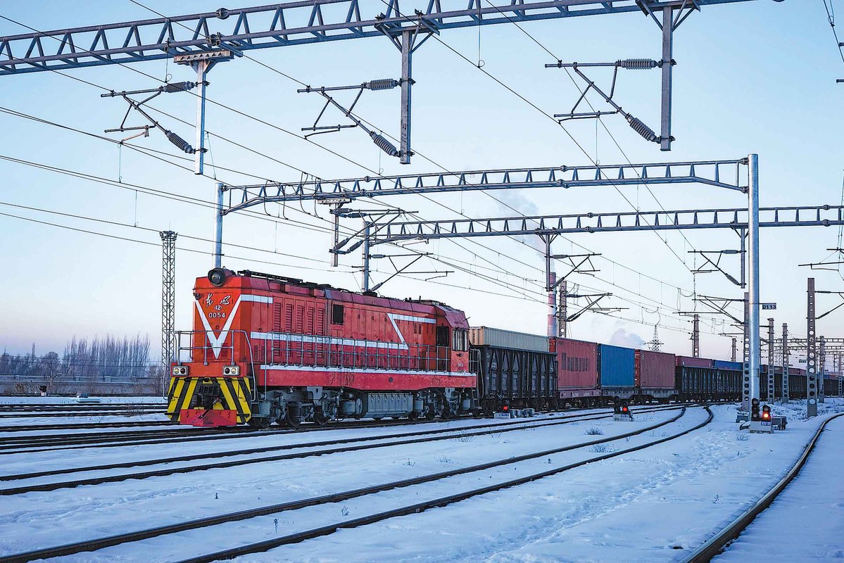 Товарен влак в Китай-Европа минава през пристанището на Хоргос, насочено към Казахстан на 25 декември. Джин Боуен/Синхуа