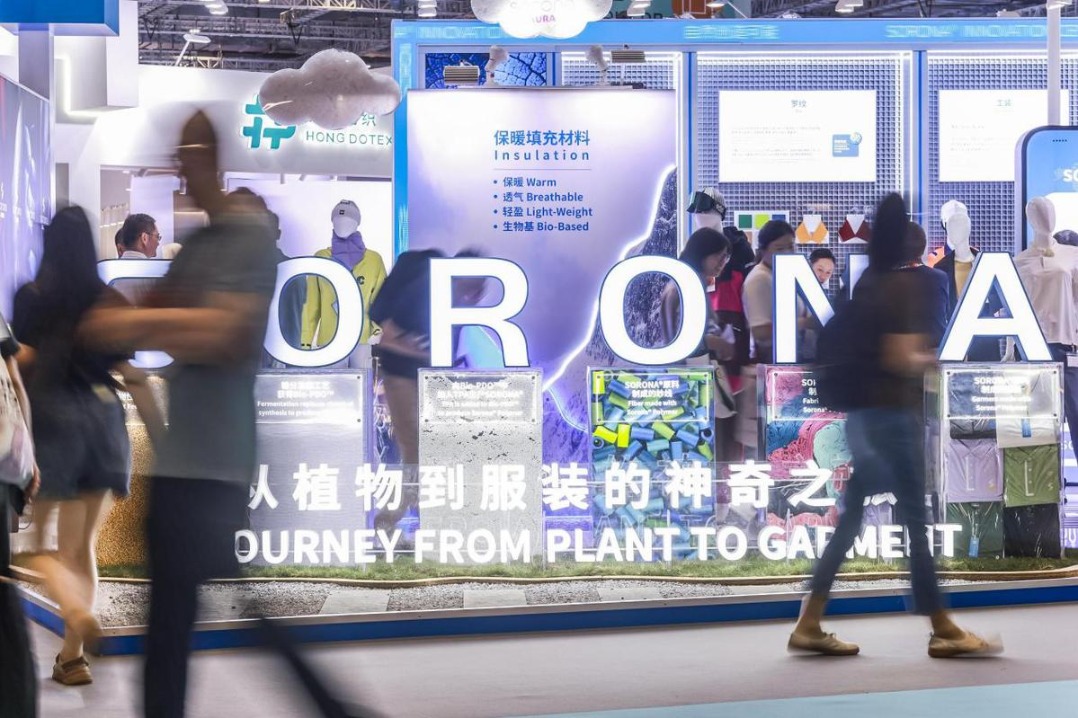 Covationbio и неговите ключови партньори показват най -новите си устойчиви иновации на интертекстилно търговско изложение в Шанхай. [Photo provided to chinadaily.com.cn]